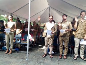 C’est la résidence de l’ambassadeur des États-Unis d’Amérique en Guinée, qui a servi de cadre à la cérémonie de prestation de serment de 43 jeunes volontaires américains du corps de la paix, qui, conformément aux principes qui régissent le système éducatif guinéen, s’engagent à enseigner les cours de mathématiques, physique, chimie, biologie, dans les établissements d’enseignement secondaire et supérieur de l’intérieur du pays, ce, pour deux années.