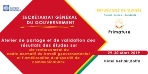 Boffa, le 30 mars 2019 – Les travaux de l’atelier de partage et de validation des résultats des études sur le renforcement du cadre normatif du travail Gouvernemental et l’amélioration du dispositif de communication se poursuivent sur les rives du fleuve Rio Pongo.