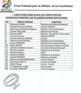 La liste préliminaire des promoteurs d’une nouvelle constitution en Guinée est connue. Elle a été publiée le vendredi 31 mai au cours d’une conférence de presse organisée par le Front National pour la Défense de la Constitution (FNDC).