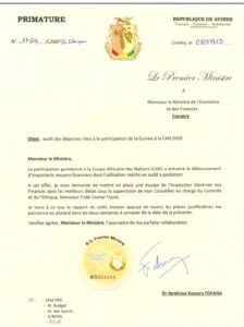Ci-dessous, copie de la lettre du PM, Kassory Fofana.