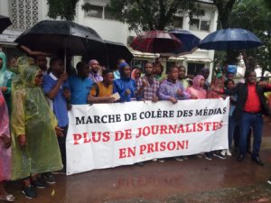 Dans la matinée de ce lundi 26 août 2019, des journalistes réunis devant le siège de la Haute Autorité de la Communication ont exprimé leur colère face aux nombreuses convocations des journalistes devant la justice.