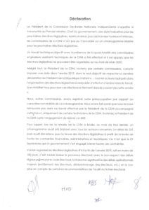 Ils sont sept commissaires tous issus de l’opposition  qui se désolidarisent de l’annonce du président de la CENI  relative à la tenue des  élections législatives  au 28 Décembre 2019.