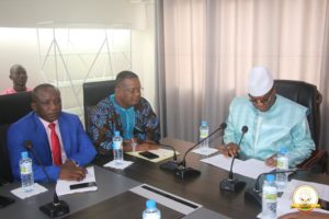 Conakry, le 20 Septembre 2019 – Dans le cadre des consultations nationales entamées la semaine dernière sur instruction du Président de la République Alpha Condé, les centrales syndicales de la Confédération Nationale des Travailleurs de Guinée ‘’CNTG’’, de l’Union syndicale des Travailleurs de Guinée ‘’USTG” 1 et 2 et le patronat Guinéen,  ont été reçus ce vendredi au palais de la Colombe par le Premier ministre Dr Ibrahima Kassory Fofana.