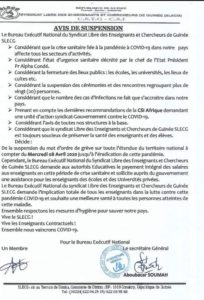 L’annonce a été faite sur les réseaux sociaux par Aboubacar Soumah, secrétaire général du Syndicat Libre des Enseignants et Chercheurs de Guinée (SLECG).