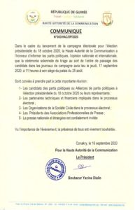 La HAC,Haute Autorité de la Communication) va procéder ce jeudi, 17 Septembre, au tirage au sort de l’ordre de passage des candidats, dans les journaux de campagne pour la présidentielle du 18 octobre 2020.