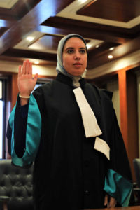 Vêtue de la toge noire à longues manches, Sara Abdel Ilah prête serment pour devenir magistrate à la Cour des comptes. Une des plus prestigieuses institutions du Maroc, située à Rabat.