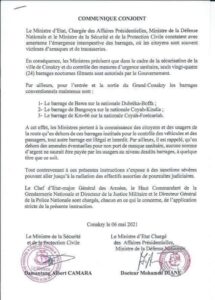 Les ministres Mohamed Diané et Damantang Albert Camara ont pris cette décision dans un communiqué conjoint dont voici la copie.