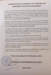 Après l’annonce du gouvernement rélative à l’ouverture d’une enquête sur l’affaire, le parquet du tribunal de première instance de Mafanco a, dans un communiqué dont nous disposons copie, informé l’opinion publique, du niveau d’évolution de la procédure .