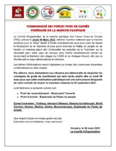 Malgré les menaces du ministre de la justice de sevir contre les organisateurs de la marche du 9 mars prochain, les forces vives de Guinée ont défini l’itinéraire.