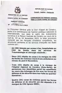 C’est le procureur général près la cour d’appel de Conakry qui a donné l’information. Dans un communiqué publié, Yamoussa Conté a déclaré que le bilan provisoire de cette attaque fait état de de 09 morts et 06 blessés. « Parmi les personnes qui ont perdu la vie, il y a 02 civils, 03 membres du commando et 04 éléments de la junte militaire ».